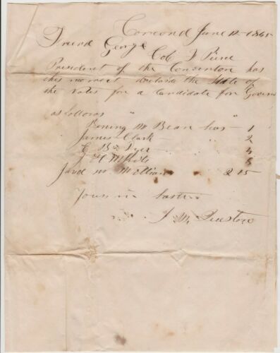Title (ebay affiliate link): 1845 CONCORD NH LETTER - FRANKLIN PIERCE ANNOUNCES VOTES FOR GOV. AT CONVENTION