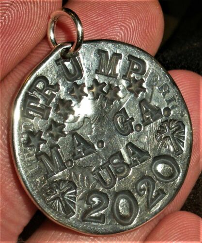 HANDMADE 1 OFA KIND TRUMP 2020 M.A.G.A. USA CROSS COIN SILVER CHARM PENDANT vafo