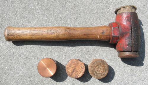 15" Chicago Rawhide Hammer No.4, Cast Iron Split-Head, Copper End, +3 Replacemts