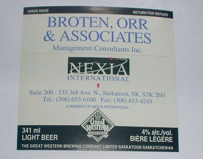 RARE CANADA BEER LABEL NEXIA GREAT WESTERN SK