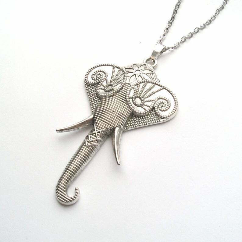 Title (ebay affiliate link): Big Elephant Necklace, Large Silver Elephant Pendant, Necklace, Antique Silver