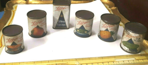 Title (ebay affiliate link): 6 VINTAGE LIBBY''S FRUIT VEGETABLE CHILD''S TOY MINIATURE COUNTRY STORE TINS LOT