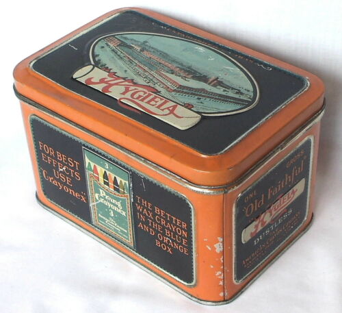 Vintage American Crayon Co Old Faithful Hygieia Dustless Chalk Tin Litho Box VGC