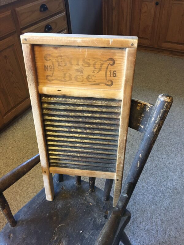 Title (ebay affiliate link): moprimitivepast VINTAGE BUSY BEE WOOD & METAL SMALL WASH BOARD #16 (18" x 8.5")