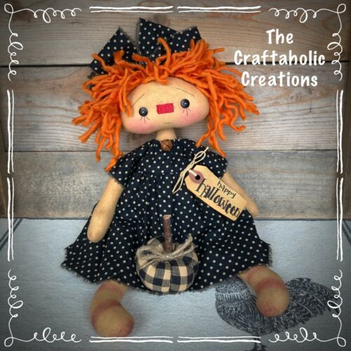 * primitive raggedy Ann doll ANNIE * HALLOWEEN * Checked PUMPKIN black Polka dot