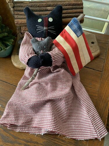 Title (ebay affiliate link): Primitive Patriotic Kitty Cat Betty Ann with Baby and Prim Flag