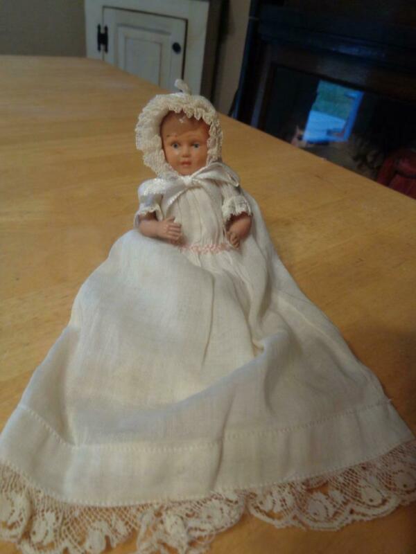Title (ebay affiliate link): Sm. Vintage/Antique Celluloid Baby Doll~Nice Long Dress~4"~