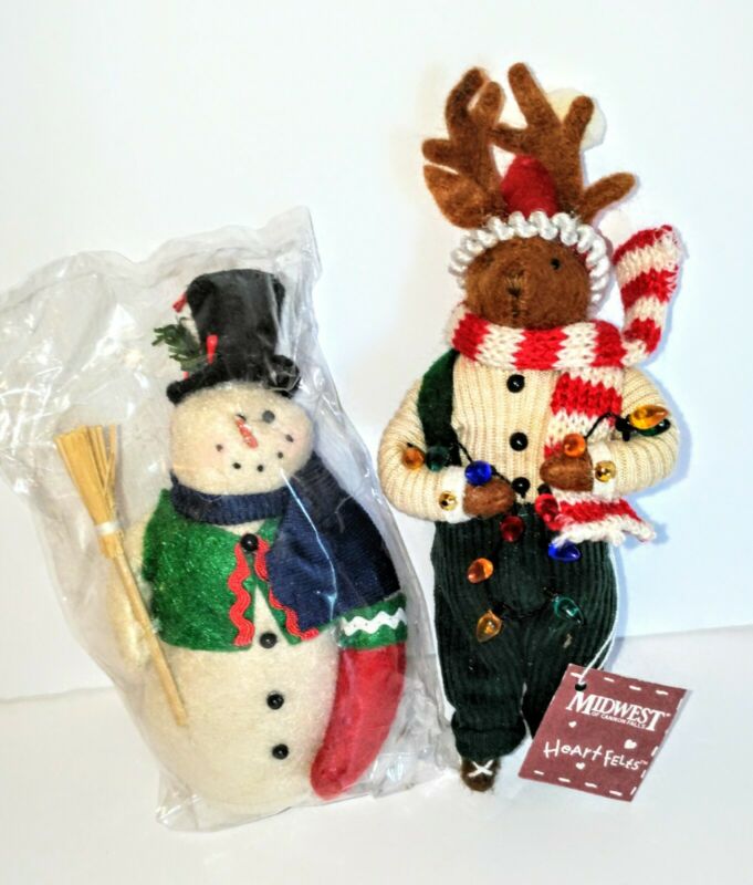 Heart Felts Reindeer and Snowman Ornaments by Midwest NOS the Snowman is Mib