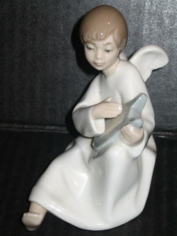 NAO BY LLADRO SPAIN YOUNG BOY ANGEL WITH LYRE HARP PORCELAIN FIGURINE