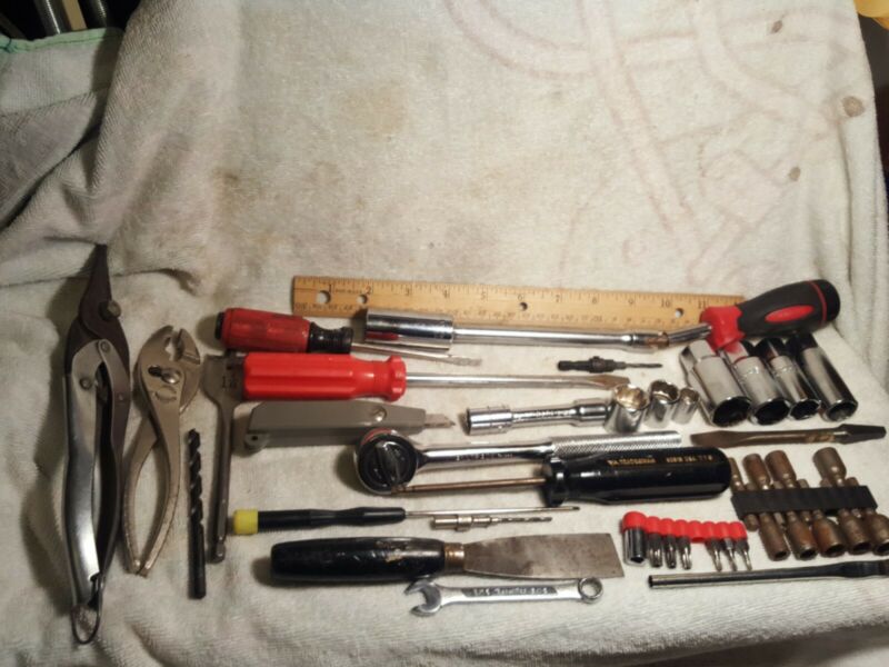 Title (ebay affiliate link): Mixed Tool Lot Plier Ratchet Socket Wrench Screwdriver snips bits knife