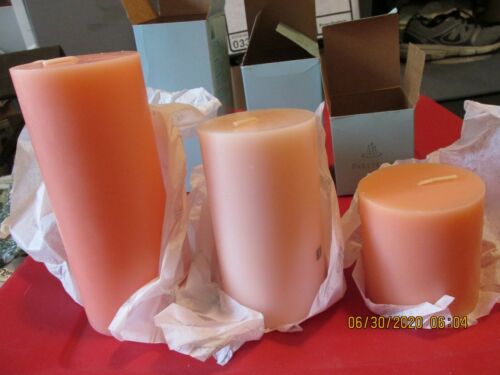 Title (ebay affiliate link): SET OF 3 PARTYLITE APRICOT DAISY PILLAR CANDLES,RETIRED 3"X3",5"X3" & 7"X3", NIB