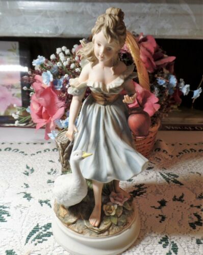 Title (ebay affiliate link): Vintage Bisque Porcelain Figurine Lady with Geese Unmarked #1988 Home Interior?