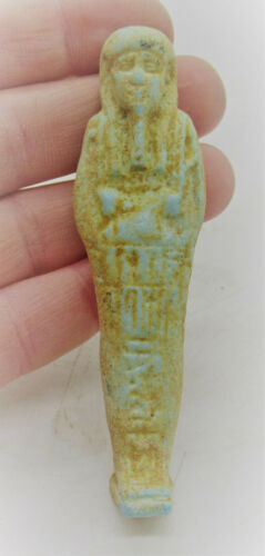 Title (ebay affiliate link): ANCIENT EGYPTIAN GLAZED FAIENCE USHABTI SHABTI CIRCA 300 BCE PTOLEMAIC