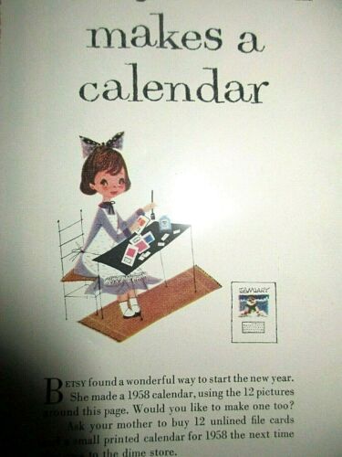 Vintage Betsy McCall Magazine Paper Doll January 1958 Makes a Calendar