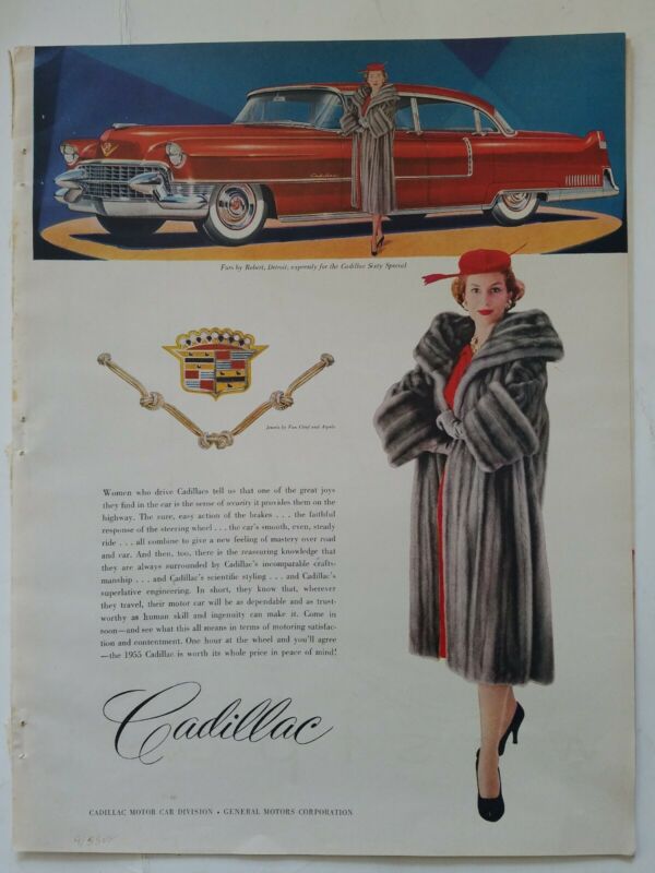 Title (ebay affiliate link): 1955 red Cadillac Sixty Special motor car womens fur coat by Robert vintage ad