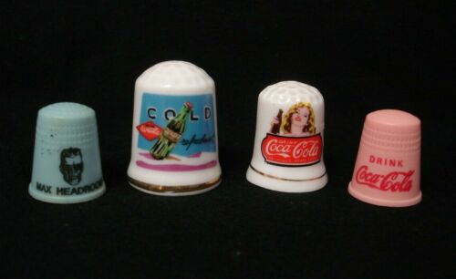 Title (ebay affiliate link): 4 COKE COCA COLA VINTAGE THIMBLES Porcelain & Plastic