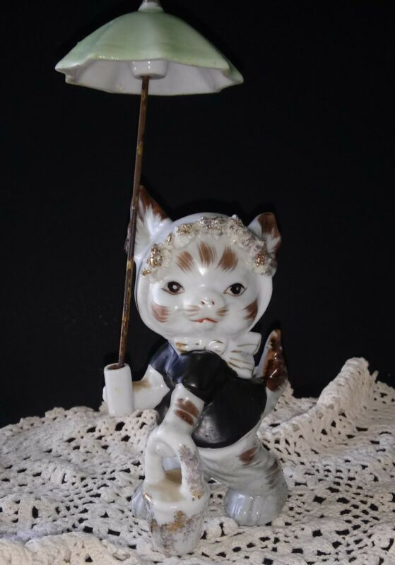Vintage figurine Cat With Umbrella parisel - porcelain