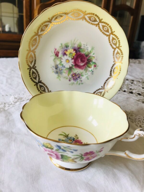 vintage paragon bone china teacup & saucer gold trim cream color floral