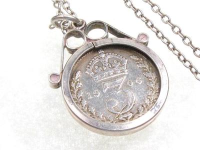 ANTIQUE SILVER 1906 THREEPENCE COIN PENDANT CHAIN