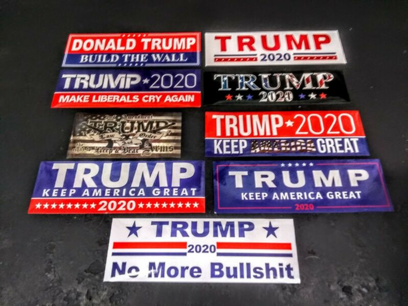 Title (ebay affiliate link): Nine Different AWESOME TRUMP DECALS BUMPER STICKERS Florida Seller IN STOCK!