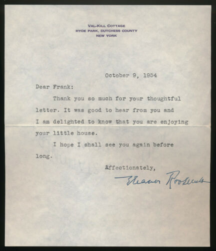 Title (ebay affiliate link): ELEANOR ROOSEVELT SIGNED 1954 LETTER (THANK YOU FOR "THOUGHTFUL LETTER") NO RSRV