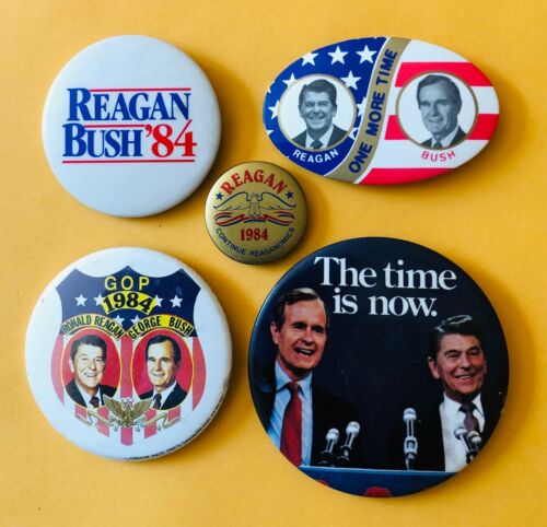 Five Reagan/Bush Political Campaign Pinback Buttons