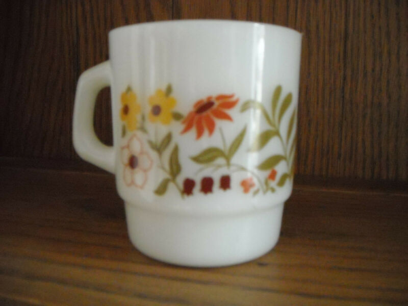 Anchor Hocking mug, White Meadow Flower, stacks well