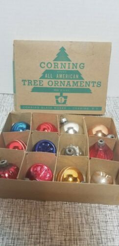 Title (ebay affiliate link): 12 VINTAGE MERCURY GLASS CHRISTMAS ORNAMENTS CORNING BOX INDENT RIBBED STRIPED
