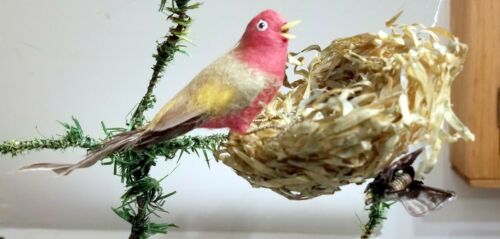 Title (ebay affiliate link): Cotton Bird protecting Egg, in Cellophane Nest. On Clip. 1930s. Home-crafted Orn