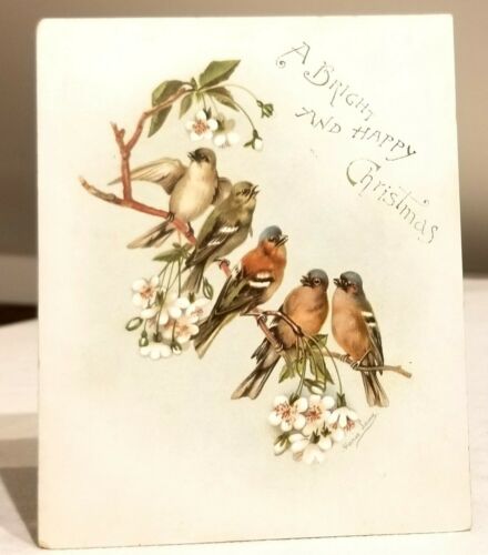 Title (ebay affiliate link): Birds on Apple Blossom Branches. Bi-fold early 1900s Xmas. Feeding Parrot Apple