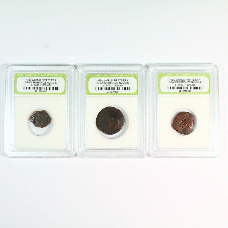 Title (ebay affiliate link): 3 Pirate Era - 1600''s Early America Spanish Bronze Cobs Exact Lot Shown 9977