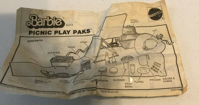 1981 Vintage Mattel Barbie Picnic Play Pacs