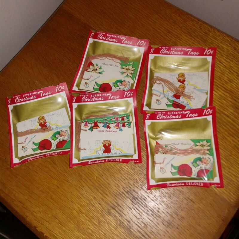Title (ebay affiliate link): 5 packs of Vintage DENNISON GIFT TAGS Sealed Pack LOT OF 5