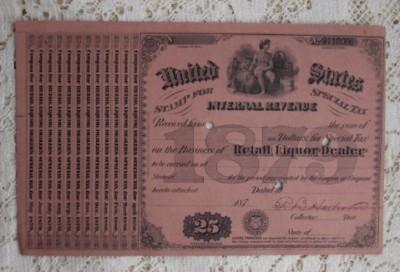 Title (ebay affiliate link): Antique 1879 LIQUOR DEALER WHISKEY Tax Stamp Moonshine