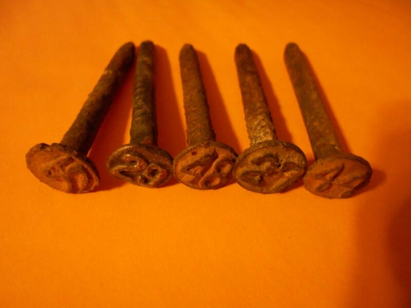 Title (ebay affiliate link): Lot of 5 Vintage Dated Railroad Tie Nails-27, 29, 44, 48, 55