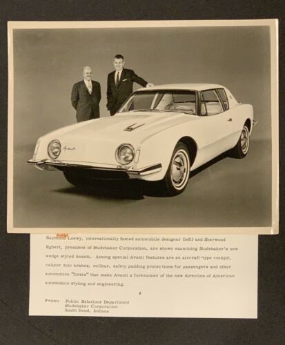 Title (ebay affiliate link): Original! 1963 Studebaker Avanti Press Photo w/ Raymond Loewy & Sherwood Egbert