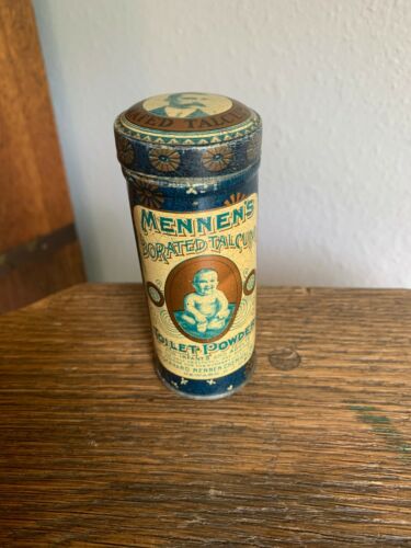 Title (ebay affiliate link): Mennen''s talcum powder tin can Early Graphics man and baby NO RESERVE