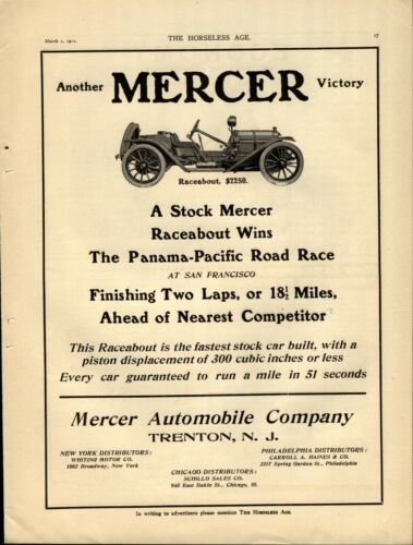 Title (ebay affiliate link): 1911 Mercer Motor Cars Advertisement: Raceabout Model - Trenton, New Jersey