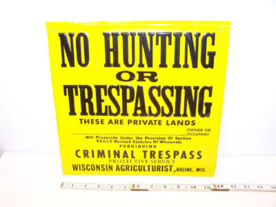 OLD WISCONSIN AGRICULTURIST RACINE NO HUNTING TIN SIGN
