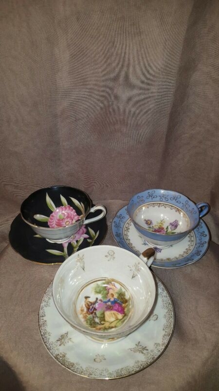 Lot of 3 Beautiful Vintage Tea Cup and Saucers. Japan made