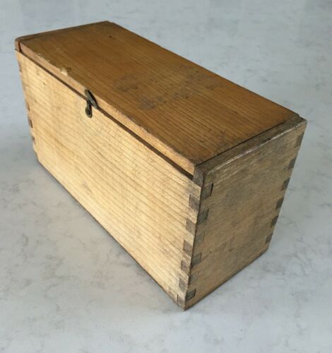 Antique Vintage WOODEN DOVE-TAIL CORNERS METAL CLASP & HINGES BOX