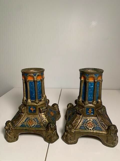 Pair of 1917 Pompeian Galvano Paul Mori Bronze Candle Holder