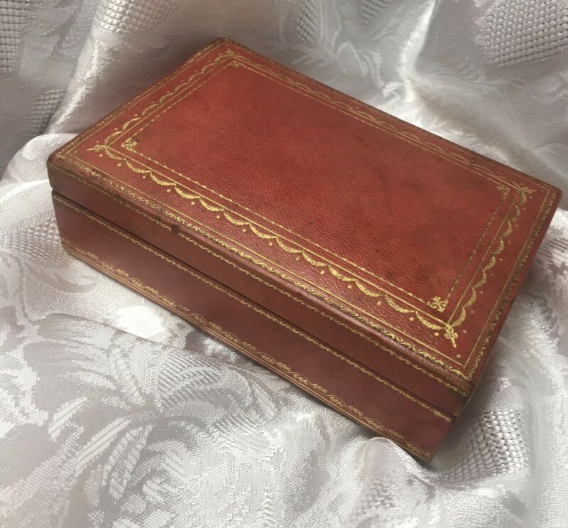 ANTIQUE ITALIAN HINGED SMALL BOX VINYL COVERED WOOD