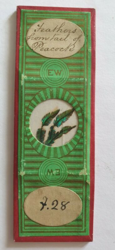 Title (ebay affiliate link): VERY FINE ANTIQUE MICROSCOPE SLIDE "FEATHERS FROM TAIL OF PEACOCK" BY WHEELER