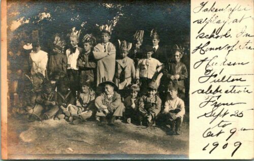 Antique RPPC Postcard ARDSLEY NY SCHOOL CHILDREN DRESSED AS INDIANS SCHOOL PLAY