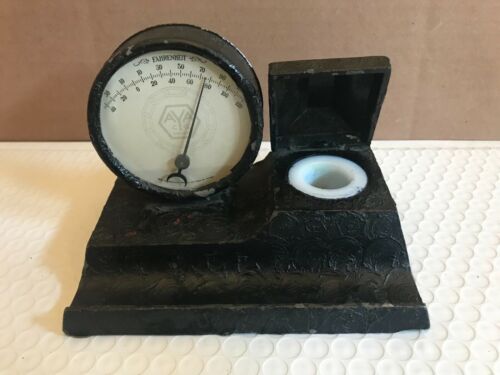 VINTAGE THERMETALLICS CHICAGO THERMOMETER INK WELL / PEN REST / MILK GLASS WELL