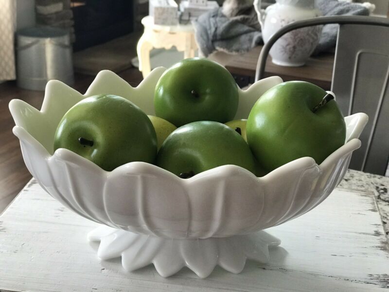 Title (ebay affiliate link): Vintage Westmoreland Footed White Milk Glass Fruit Bowl Leaf Pattern Farmhouse