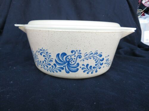 Pyrex 475-B Casserole Homestead 2.5 Quart Vintage Blue Tan with Blue Tan Lid