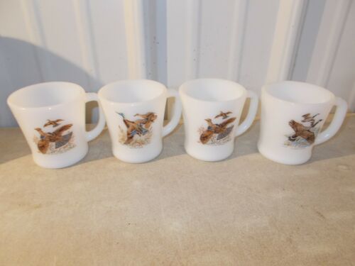 Title (ebay affiliate link): Set of 4 Vintage Fire King Game Bird Coffee Cups Mugs Oven Ware White Milk Glass