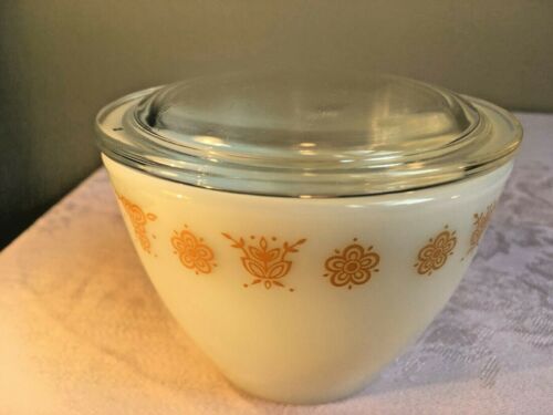 1970''s Pyrex Butterfly Gold Sugar Bowl with matching Glass Lid Corning
